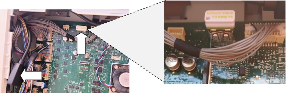 2. BarDIMM Pro part number JM30100Z can be installed inside the printer formatter after unplugging the USB cable that goes to the printer/MFP walkup USB plug (that anyway many Enterprise clients deactivate for security purpose).